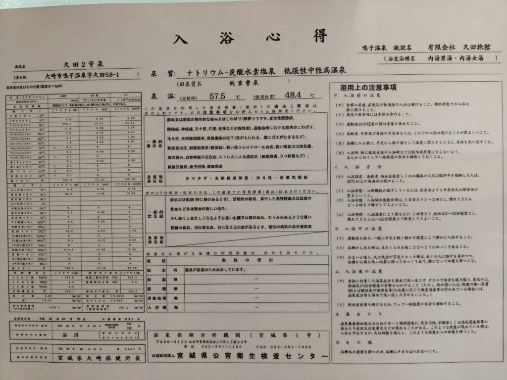 2つとも茶褐色のお湯で、鳴子らしい肌にまとわりつく化粧水のような温泉。香りもよし。熱すぎないので、長湯してしまう。子供とも入れた。